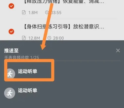 在喜马拉雅穿戴中找到需要传送到手表的内容,点击【多选】。