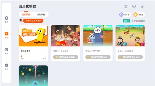 5、完成项目学习课程解锁后,每天可按计划观看对应的教学视频,循序渐进掌握编程技能。