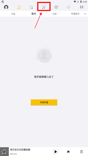 1、安装并打开海贝音乐APP,登录您的账号后,点击顶部中央图标进入主功能区;