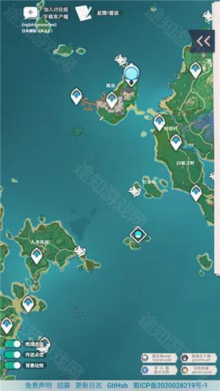 2、在左侧工具栏中,可选择蒙德、璃月、层岩巨渊、稻妻、鹤观、渊下宫等区域,点击后地图将自动跳转至对应地区,便于精准定位。
